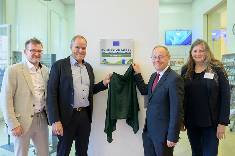 „Wir freuen uns sehr über diese besondere Auszeichnung“, sagte Oberbürgermeister Würzner bei der Enthüllung des Siegels im Rathaus. „Mit Blick auf unser Ziel, bis 2030 weitreichende Klimaneutralität zu erreichen, ist dieses Label ein wichtiger Schritt. Die Auszeichnung bestärkt uns in dem Vorhaben, gemeinsam mit Kooperationspartnerinnen und -partnern aus Wirtschaft, Wissenschaft und Zivilgesellschaft zielgerichtet und beschleunigt Maßnahmen in allen Sektoren umzusetzen.“ Die Teilnahme am Programm biete Heidelberg zudem die Möglichkeit, sich mit anderen teilnehmenden Städten noch stärker zu vernetzen, so der Oberbürgermeister. Darüber hinaus hat Heidelberg als ausgezeichnete klimaneutrale und intelligente Stadt privilegierten Zugang zu EU-Fördergeldern. „Wir brauchen in Europa starke Städte, die Vorbild sind auf dem Weg zur Klimaneutralität. Ich freue mich, dass Heidelberg EU-Mission-Stadt ist und wir gemeinsam mit den Stadtgesellschaften aller Städte an der Transformation Europas für die Zukunft arbeiten“, ergänzte Patrick Child.