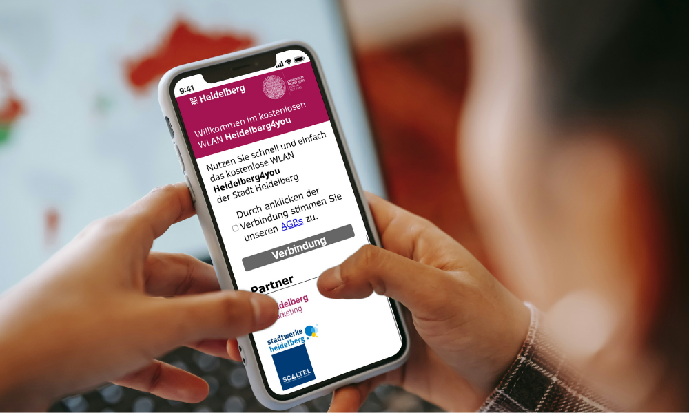 An mehr als 200 Standorten im Heidelberger Stadtgebiet können Nutzerinnen und Nutzer kostenlos das freie WLAN Heidelberg4you nutzen. Damit bietet die Stadt eines der größten öffentlichen WLAN-Netze in Deutschland.