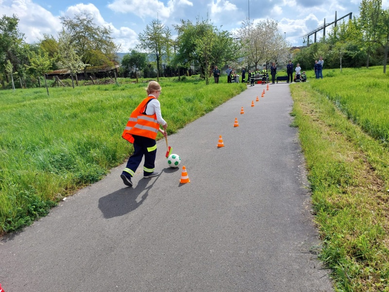 Für die Anmeldungsformalitäten und die Schätzfrage hatte man den damaligen Gründer und derzeitigen Stadtbrandmeister der Freiwilligen Feuerwehr Heidelberg Uwe Bender, gewissermaßen als Schirmherr gewinnen können. Das Team um Silke Giebel hatte an 10 markanten Orten rund um das Feuerwehrgerätehaus Kirchheim Aufgaben aus dem Bereich Sport, Spiel, Feuerwehr und viel Spaß vorbereitet die die Kindergruppen zu bewältigen hatten. Neben einem klassischen Löschangriff mussten auch Disziplinen wie Stiefelweitwurf, Leitergolf, Schlauchkegeln, Puzzle, Gedächtnis-Kiste und vieles mehr absolviert werden. Bei den verschiedenen Aktivitäten konnten dann auch fleißig Punkte gesammelt werden, welche dann am Ende addiert wurden.