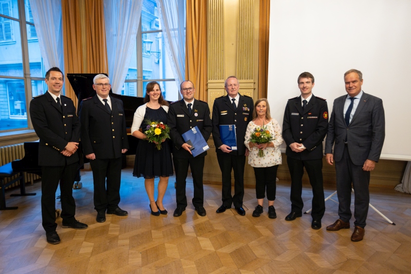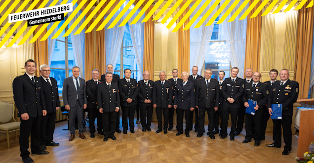 Für 25, 40 und 50-jährige Dienstzeit wurden sechs Feuerwehrangehörige ausgezeichnet. Weitere sieben Feuerwehrangehörige erhielten für ihre 50 und 60-jährige Zugehörigkeit zur Feuerwehr Heidelberg die Dankesurkunde der Stadt.