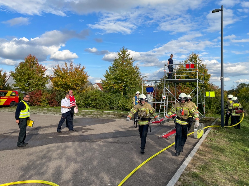 Dass sich das intensive Üben im Vorfeld gelohnt hat, zeigte sich beim Absolvieren des vorgegebenen Löschangriffs mit Menschenrettung über die Steckleiter. Beide Gruppen waren mit 6:03 Minuten und 5:40 Minuten beide Male deutlich unter der vorgegebenen Höchstzeit von sieben Minuten geblieben.