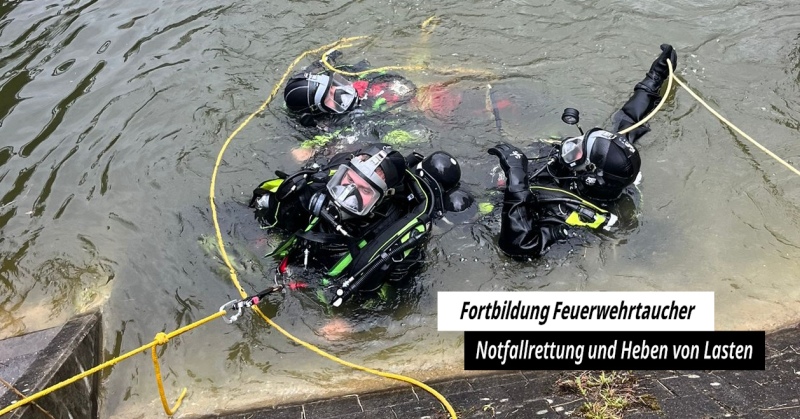 🔹 27 Taucher aller drei Wachabteilungen der Berufsfeuerwehr haben sich an der Landesfeuerwehrschule fortgebildet und neue Techniken und Vorgehensweisen erlernt und geübt. Neben Einsatz von Hebekissen zur Bergung von Lasten, wurde auch die Notfallrettung intensiv geübt.