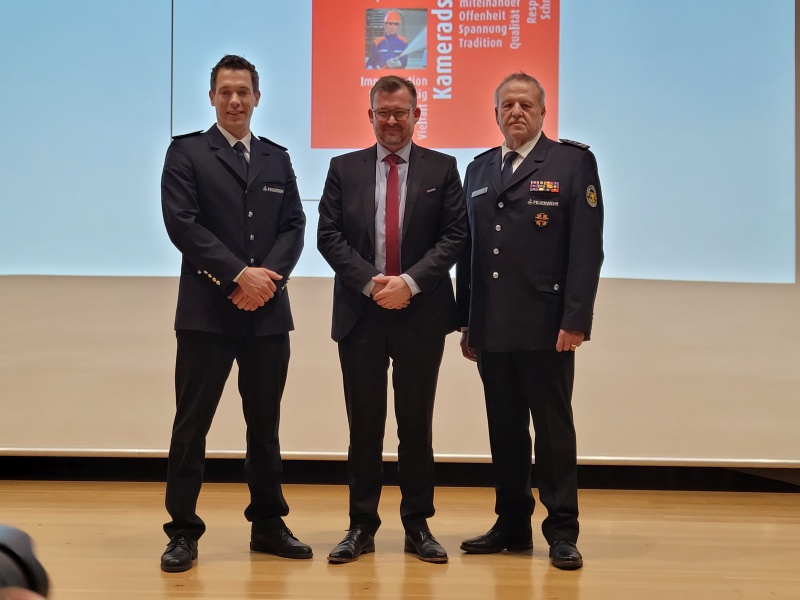 Dass die Stadtspitze hinter der Feuerwehr steht, betonte Bürgermeister Raoul Schmidt-Lamontain der die Grußworte der Stadtverwaltung überbrachte und die Verlässlichkeit der Feuerwehr bei den vergangenen Krisenlagen (Corona-Ukraine-Gasmangellage) hervorhob.
