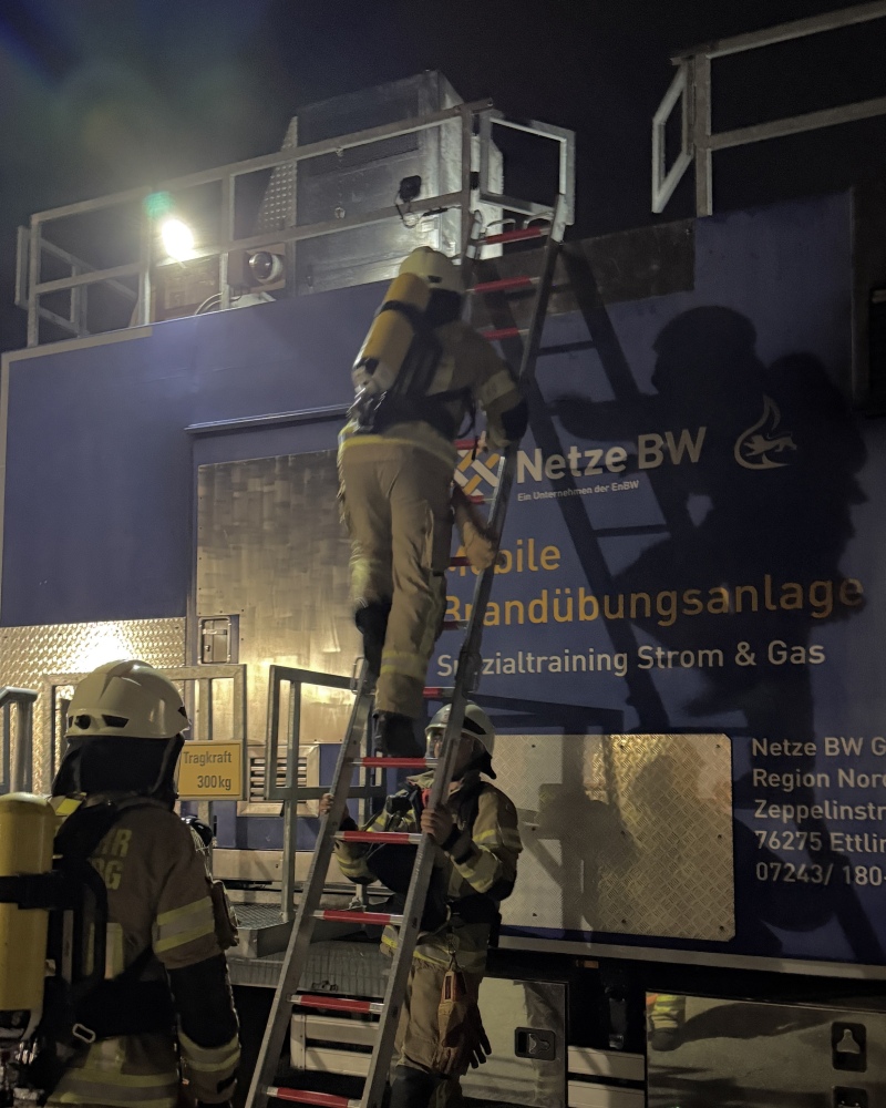 Eine Ausbildung konnte in der gasbefeuerten Übungsanlage der Netze BW durchgeführt werden, die zu diesem Zeitpunkt bei der Feuerwehr Sinsheim aufgebaut war.
