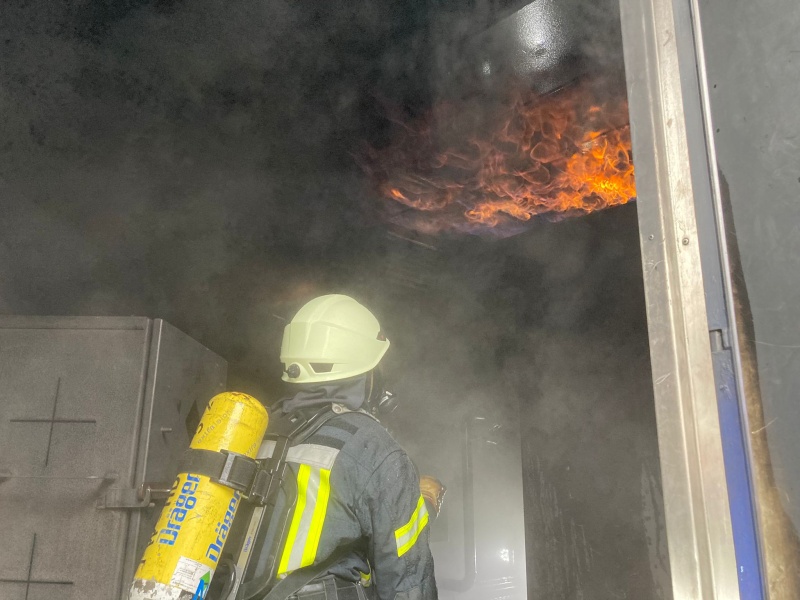 Im Brandcontainer ist ein Zimmer mit Bett und Schrank samt zwei Zugangswegen (Treppe und Tür) nachgebildet. Mittels Gasbrennern können verschiedene Brandstellen und Einsatzsituationen wie z.B. ein Roll-Over nachgestellt werden.