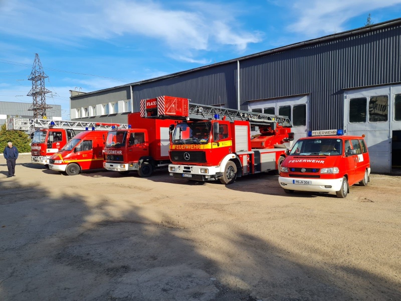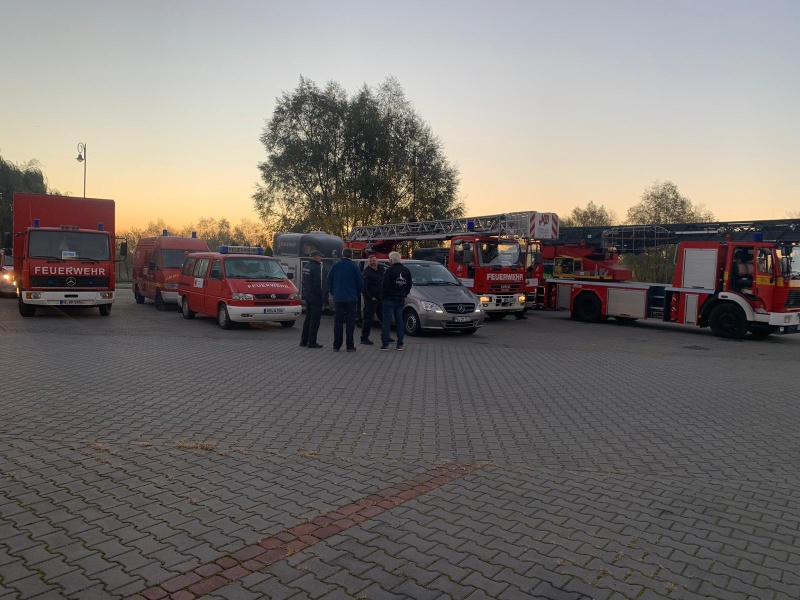Die Übergabe der Drehleiter erfolgte wie bereits im Sommer zusammen mit einem von der Feuerwehr Delbrück organisierten Hilfskonvoi, der weitere Fahrzeuge und Feuerwehrausstattung umfasste.