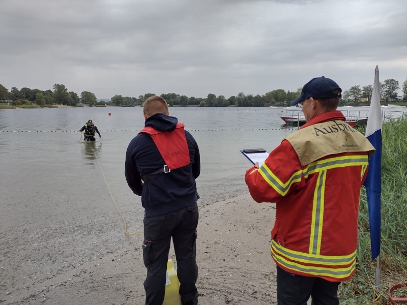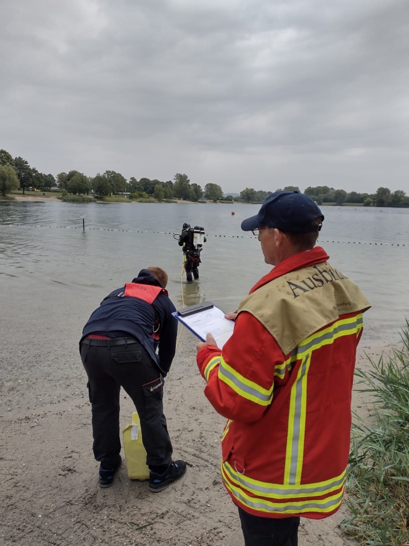 Die praktische Prüfung zum Feuerwehrtaucher der Stufe 2 wurde am See in St. Leon-Rot absolviert und umfasst folgende Inhalte:
