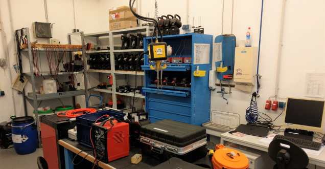 Kleinere Reparaturen an den Geräten können in der Batteriewerkstatt durchgeführt werden. Für die verschiedenen Akkutypen stehen entsprechende Ladegeräte zur Verfügung.