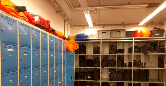 Im Taucherraum werden die Tauchkleidung und die für Tauchvorgänge erforderlichen Utensilien aufbewahrt.