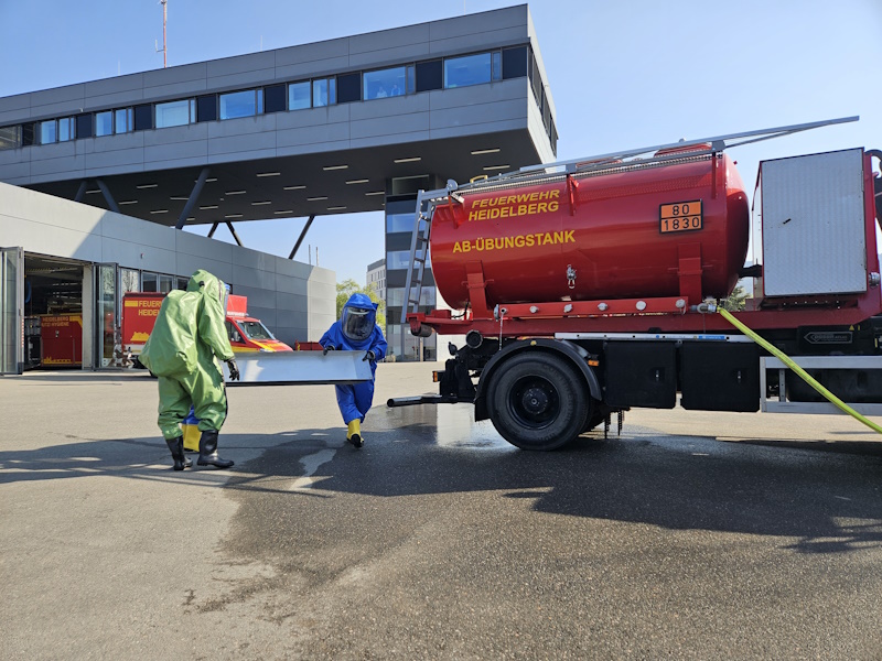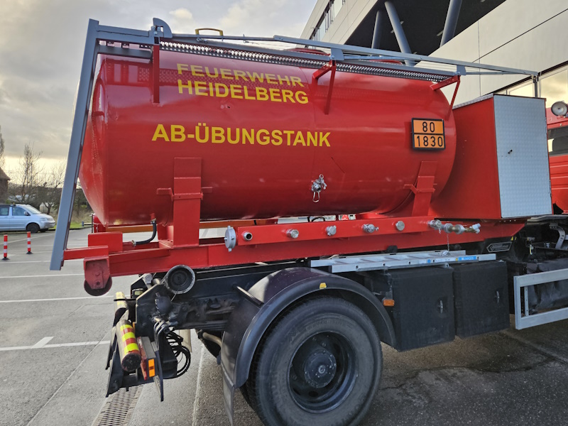 Um solche Lagen üben zu können, verfügt die Feuerwehr Heidelberg über den Abrollbehälter Übungstank