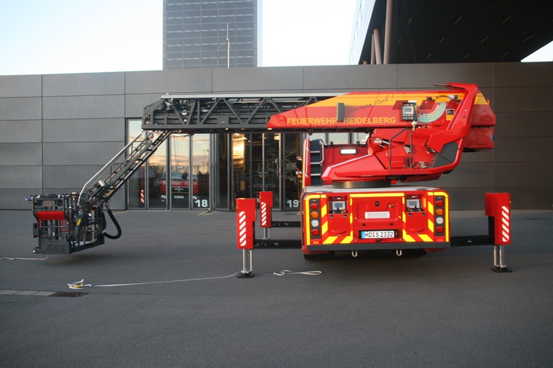 Die von der Firma Metz gebaute Drehleiter der Baureihe L32A XS verfügt über einen absenkbaren 4,6m langen Korbarm. Dieses System kommt in Heidelberg erstmals zum Einsatz und eröffnet der Feuerwehr Heidelberg nicht nur die Möglichkeit auch bauwerksseitige, schwierige Objekte anfahren zu können. Vielmehr erleichtert die Möglichkeit den Korbarm abzusenken den Einsatzkräften einen leichteren Zugang in Fenster, Dachgauben usw. Auch für zu rettende Personen wird der Zugang in den Rettungskorb erleichtert und kann sicherer erfolgen als bisher. Auch die Zuladung des Rettungskorbes hat sich von bisher 270 kg auf maximal 450 kg erhöht. Damit können erstmals bis zu 4 Personen im Rettungskorb befördert werden.