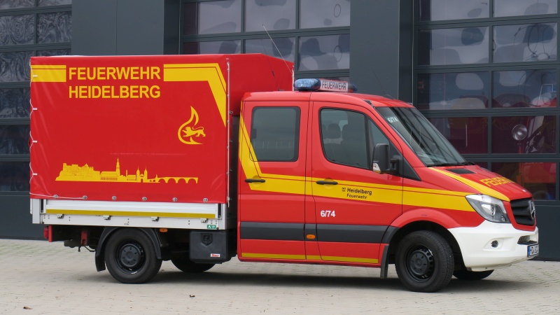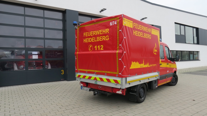 Zum Transport kleinerer Geräte und Ausrüstung aus dem Katastrophenschutzlager kann die Abteilung Wieblingen auf einen Gerätewagen Transport auf Sprinter-Fahrgestell zurückgreifen. Die Doppelkabine und der Plane-Spriegel-Aufbau machen das Fahrzeug besonders variabel.