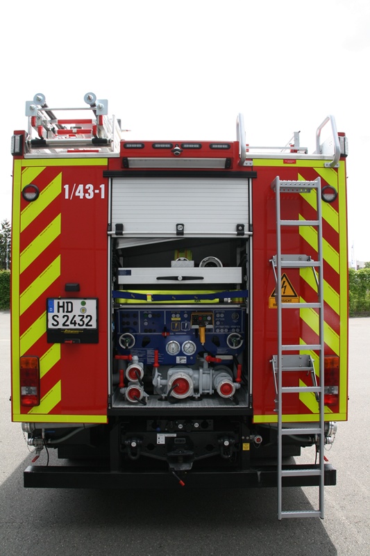 Daneben ist die nach DIN vorgegebene Ausstattung wie Werkzeugsatz, Elektrowerkzeugsatz, Verkehrsunfallsatz, Schornsteinfegerwerkzeug, Notfallrucksack, Motorkettensäge, Trennschleifer, Beleuchtungsgerät und vieles mehr auf dem Fahrzeug leicht zugänglich verlastet.