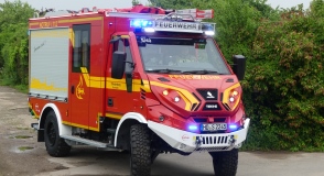 Das allradangetriebene Fahrzeug erreicht im Wasser eine Wattiefe von 90cm und verfügt speziell bei der Bekämpfung von Wald-/Flächenbränden über eine Reifenselbstschutzanlage.