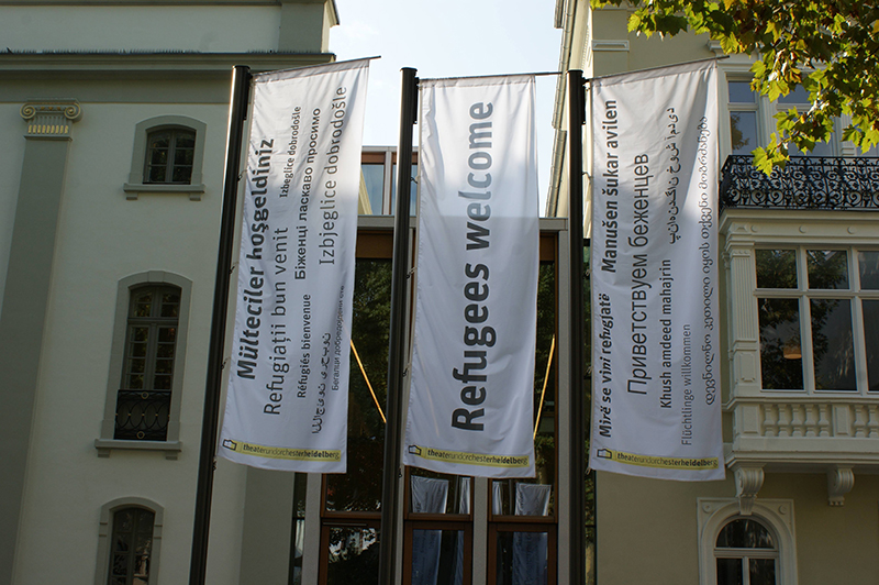 Deutschunterricht am Theater und Orchester Heidelberg Seit Oktober 2015: Auch am Heidelberger Theater sind seit geraumer Zeit Mitarbeiterinnen und Mitarbeiter in Sachen "Unterstützung für Flüchtlinge" sehr aktiv. Zweimal wöchentlich geben diese seit Anfang Oktober für 10 bis 15 Asylbewerber Deutschunterricht. Ermöglicht wurde beispielsweise der Kauf der benötigten Lehrbücher durch zahlreiche Spenden, die bei Vorstellungen gesammelt wurden, von Heidelberger Bürgern. Zusätzlich werden in Zusammenarbeit mit dem Deutschen Roten Kreuz vor Ort und Theatermachern für das Flüchtlingsheim in Heidelberg Kleidung, Spielwaren etc. sortiert, damit benötigte Dinge schneller dort ankommen wo sie hin sollen. Zu ausgewählten Aufführungen und Konzerten sind Flüchtlinge herzlich in das Heidelberger Theater eingeladen. |