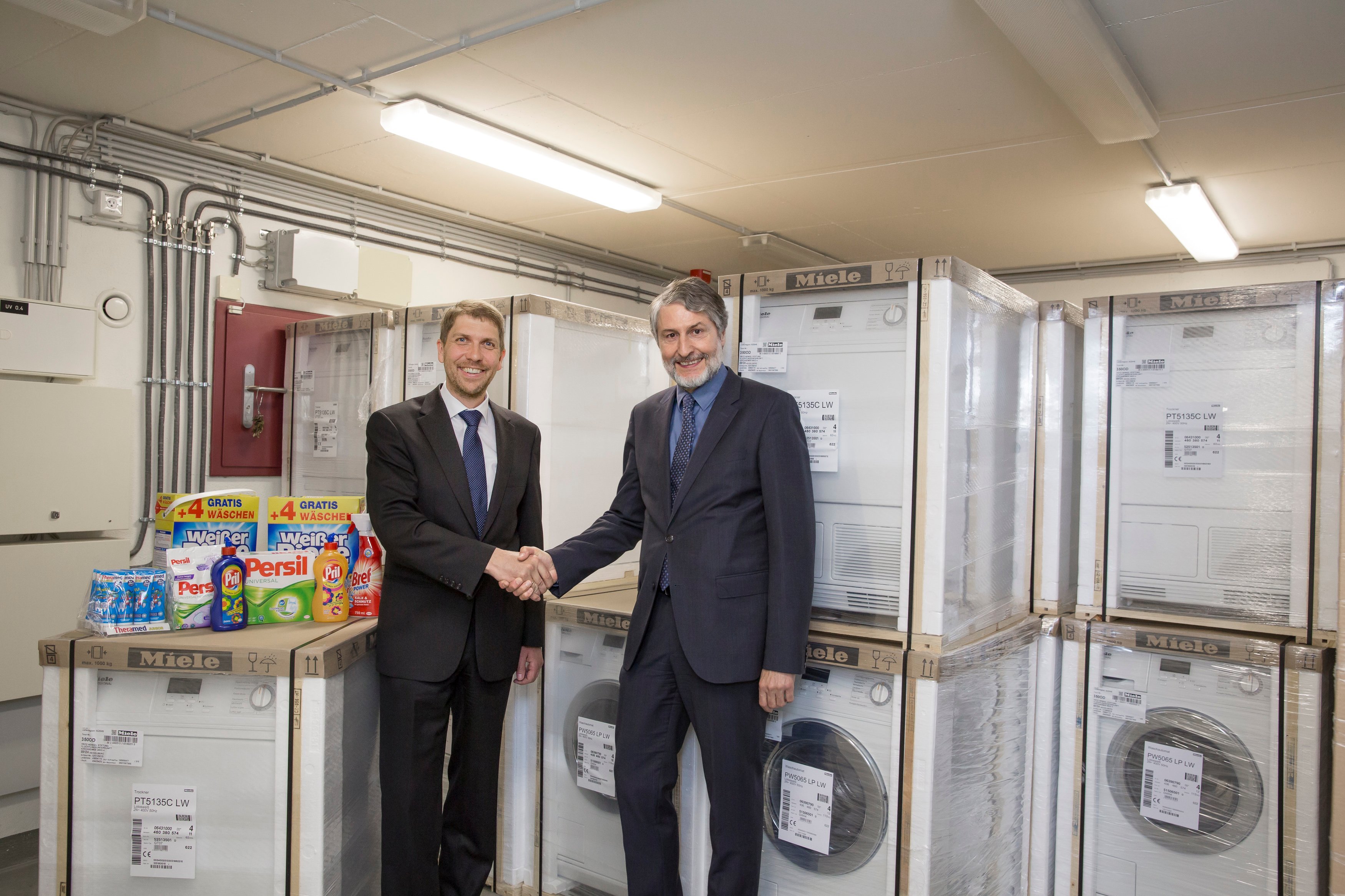 Henkel spendet Waschmaschinen und Trockner für Flüchtlinge Mai 2016: Mit einer Spende von je 20 Industriewaschmaschinen und -trocknern, aber auch von Wasch- und Körperpflegeprodukten unterstützt die Fritz Henkel Stiftung Düsseldorf unter anderen zwei Unterkünfte für Flüchtlinge der Stadt Heidelberg in Handschuhsheim und im Pfaffengrund. mehr dazu |