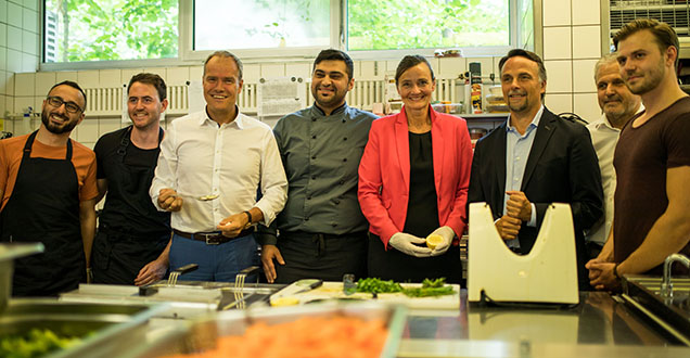 #HolDenOberbürgermeister: Prof. Würzner besuchte Kochprojekt zur Integration von Flüchtlingen Juni 2018: Wie können Menschen, die nach Deutschland geflüchtet sind, gut und schnell integriert werden? Über diese Frage haben sich die vier Initiatoren des Projekts „Sindbad“ Gedanken gemacht. Ihre Antwort: mit einem Kochprojekt, bei dem sich Geflüchtete und Einheimische näherkommen, sowie der Schaffung von Arbeitsplätzen. Die Initiative möchte daher nun ein Restaurant eröffnen, dessen Belegschaft größtenteils aus Geflüchteten besteht. Heidelbergs Oberbürgermeister Prof. Dr. Eckart Würzner hat das Projekt am 15. Juni 2018 besucht. mehr dazu |