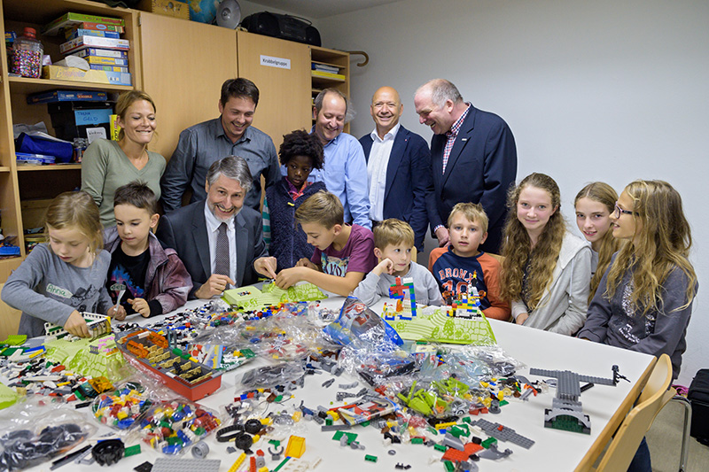 Aktion Zusammenspiel September 2015: Begegnung zu schaffen zwischen einheimischen und geflüchteten Kindern – das ist die Idee der „Aktion Zusammenspiel". Heidelberger Kinder, die am "Schulanfänger-Camp" des Stadtjugendrings teilnahmen, besuchten eine Gruppe der vom Caritasverband organisierten Kinderbetreuung in der städtischen Flüchtlingsunterkunft in der Hardtstraße. Zwei große Spielzeugpakete mit Lego-Steinen steuerte das Bundesfamilienministerium (BMFSFJ) bei. mehr dazu |
