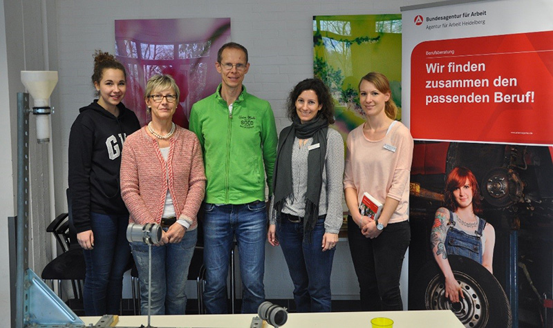 Berufe-Parcours für jugendliche Flüchtlinge in der Johannes-Gutenberg Schule Februar 2017: In den Vorqualifizierungsklassen Arbeit und Beruf ohne Deutschkenntnisse (VOBA_Klassen) werden schulpflichtige Migrantinnen und Migranten mit einer intensiven Deutschförderung auf den Wechsel in eine reguläre Klasse vorbereitet. In den VABO-Klassen wird anhand von berufspraktischen Lerninhalten Deutsch vermittelt und die Schülerinnen und Schüler erhalten Einblicke in viele verschiedene Berufe. Um diese Einblicke zu vertiefen, organisierten die Jugendagentur Heidelberg in Zusammenarbeit mit der Johannes Gutenberg Schule und der Berufsberatung der Arbeitsagentur einen Berufe-Parcours, bei dem die Jugendlichen an verschiedenen Stationen ihre Fertigkeiten anhand typischer Tätigkeiten aus verschiedenen Berufsbildern testen konnten. Es war die erste Aktion dieser Art speziell für junge Migranteninnen und Migranten und das Angebot wurde gut angenommen. Ungefähr 70 Schülerinnen und Schüler aus fünf Klassen durchliefen am Aktionstag den Berufe-Parcours. |