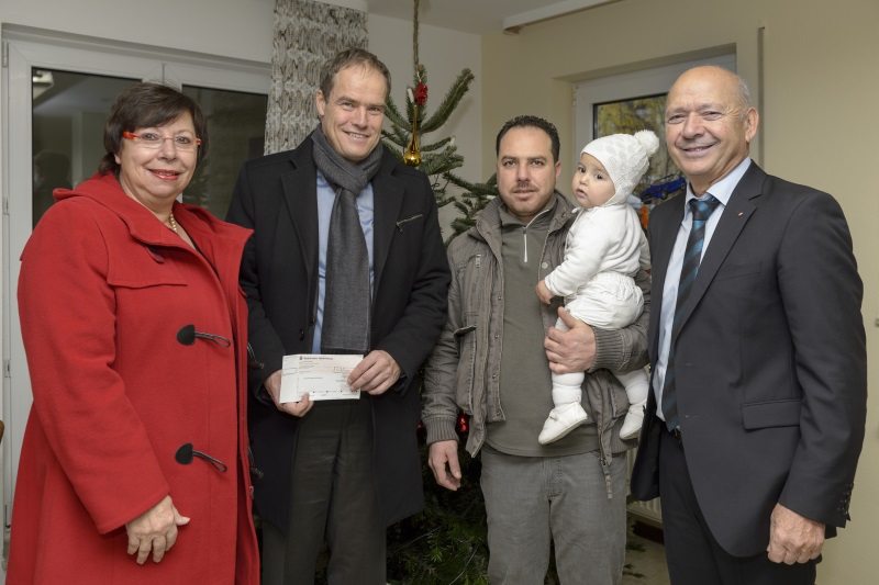 Besuch in der städtischen Gemeinschaftsunterkunft für Asylbewerber in der Hardtstraße: Oberbürgermeister Dr. Eckart Würzner hat am 18. Dezember dem Geschäftsführer des Heidelberger Caritasverbandes, Hubert Herrmann, einen Spendenscheck über 1.000 Euro überreicht. Jedes Jahr wählt der Oberbürgermeister eine soziale Heidelberger Einrichtung aus, die er mit einer Spende aus seinen persönlichen Verfügungsmitteln unterstützt. In der Hardtstraße leben aktuell etwa 360 Asylsuchende, darunter rund 90 Kinder und Jugendliche. Der Caritasverband ist eine der Organisationen, die sich in der Flüchtlingsbetreuung engagieren.