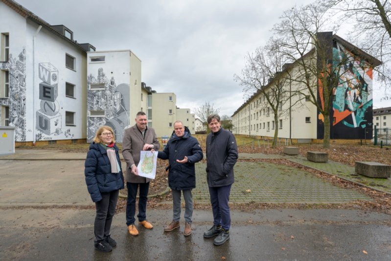 „Wir haben ein klares Ziel vor Augen: Insgesamt wollen wir in den nächsten Jahren rund 550 Wohnungen im preisgedämpften Segment auf den Baufeldern B2 bis B4 schaffen. Begonnen wird nun in der südlichsten Zeile mit der Aufstockung und Sanierung von zwei Gebäuden. Das Vergabeverfahren läuft bereits seit Dezember 2023 und wir sind guter Dinge, dass die Bauarbeiten - nach dem Genehmigungsverfahren und den Werkplanungen – noch in diesem Jahr beginnen können“, sagt Susanne Dübon, Leiterin der zuständigen Hauptstelle Portfoliomanagement der Bundesanstalt für Immobilienaufgaben (BImA).