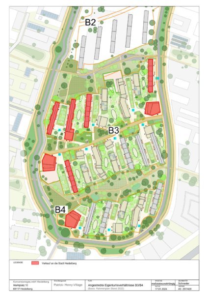 Wer künftig welche Flächen entwickelt, darauf haben sich die Stadt Heidelberg und BImA kürzlich geeinigt. Konkret geht es um die Flächen im Süden PHVs, die in Richtung der Bundesstraße 535 liegen. Die BImA entwickelt vorrangig die südlichen Baufelder (Teilflächen von B2/B3/B4, siehe Plan). Die Stadt erwirbt acht Baufelder mit fünf Bestandsgebäuden und für drei Neubauten (auf Baufeldern B3/B4). Die Flächen sind insgesamt 2,4 Hektar groß. In den fünf Bestandsgebäuden, die die Stadt kaufen möchte, können rund 150 Wohnungen geschaffen werden, unter anderen auch für Wohngruppen und studentisches Wohnen. Darüber hinaus baut die Stadt auf diesen Flächen soziale Infrastruktur (Kita/Schule) und bietet Platz für kleinere Gewerbeeinheiten.