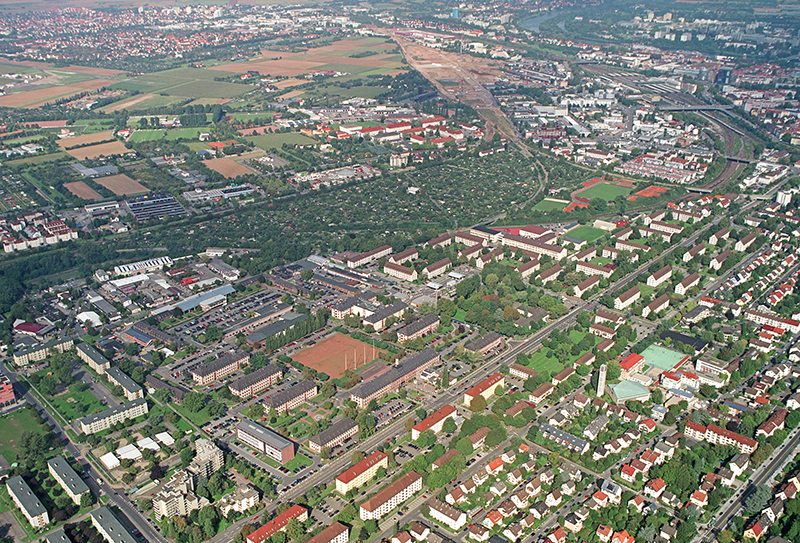 - Das Polizeipräsidium Mannheim wird mit dem Verkehrskommissariat und der Kriminaldirektion in drei Gebäude im südöstlichen Bereich einziehen.