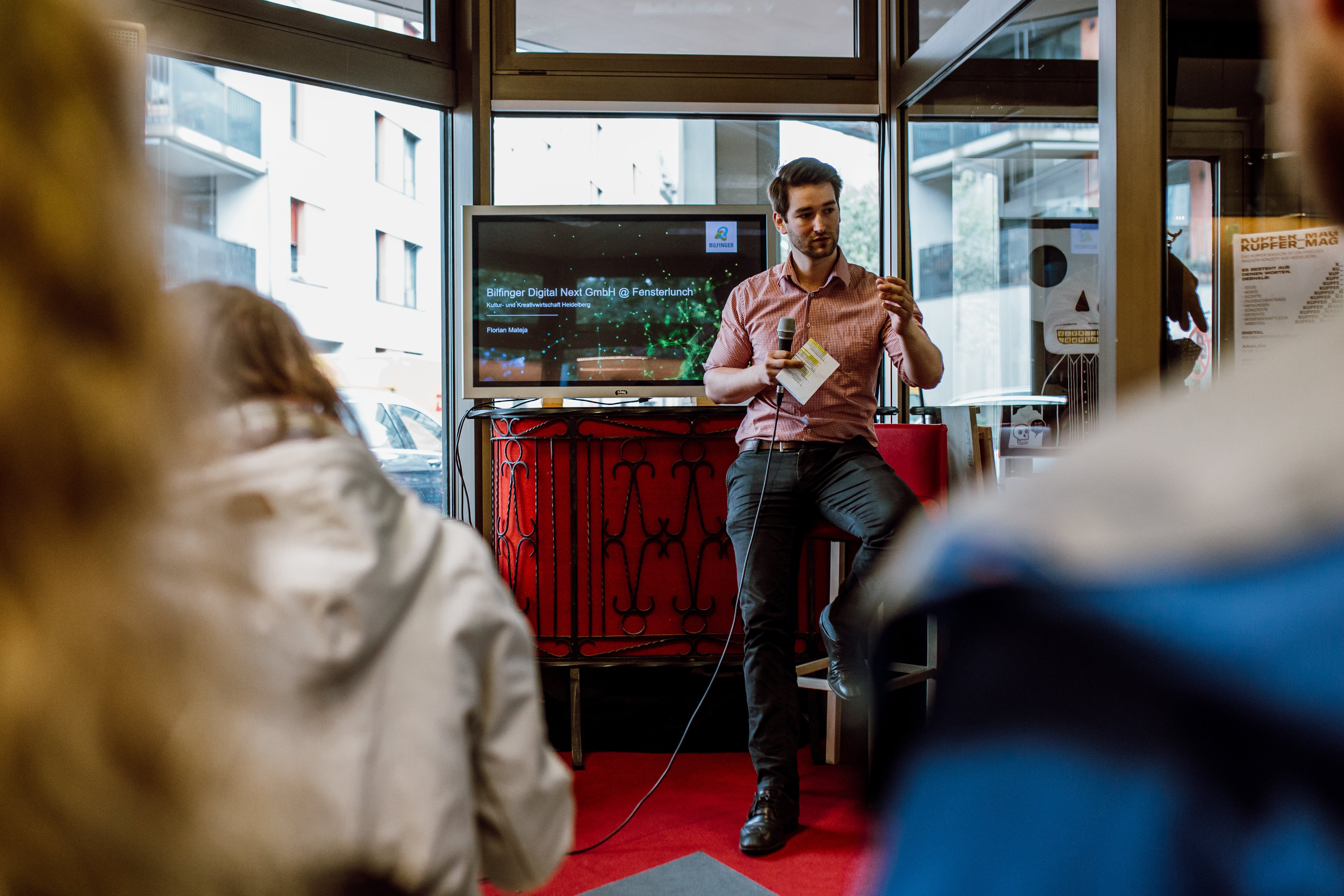 Das internationale Unternehmen Bilfinger eröffnete im März 2019 einen neuen Standort für sein Kompetenzzentrum im Bereich Digitalisierung in der Heidelberger Bahnstadt. Beim FensterLunch präsentierte sich das junge Team von Bilfinger Digital Next und sprach über neue Technologien und Schnittstellen zwischen Industrieunternehmen und Kreativunternehmen.