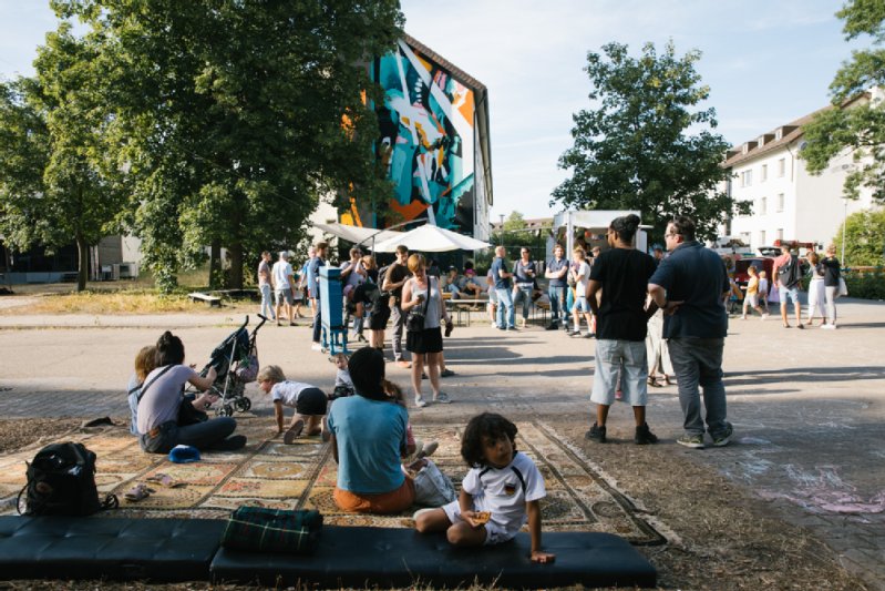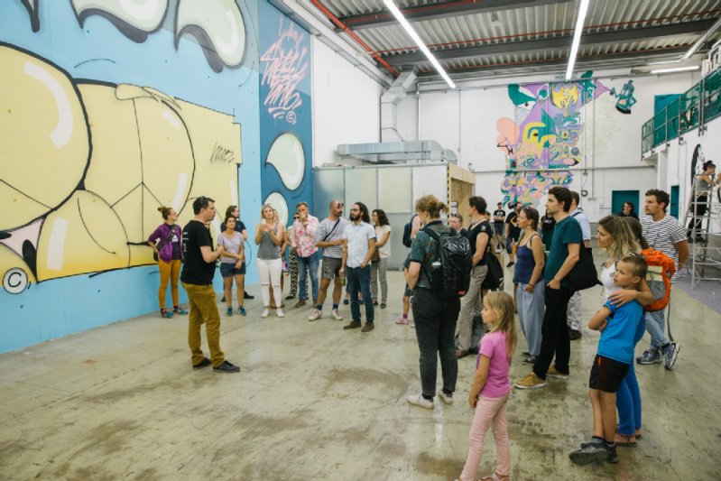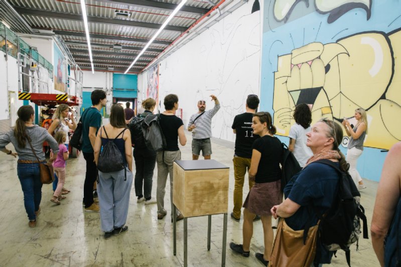 FensterLunch on tour! Das Metropolink-Festival 2019 gab Anlass genug, das monatliche Branchentreffen der Kultur- und Kreativschaffenden in Heidelberg - außer der Reihe - auf die ehemalige US-Army-Fläche Patrick-Henry-Village (PHV) zu verlegen. Startpunkt auf PHV am 10. Juli 2019 war der ehemalige Supermarkt. Vor der Commissary stellte Pascal Baumgärtner das Festival für urbane Kunst "Metropolink" sowie seine Pläne für die Commissary vor: die PX Factory, eine Kunsthalle mit internationalem Flair zu erschaffen. Im Rahmen des FensterLunches @ Metropolink konnten sich die Gäste bereits einen ersten Eindruck von den Kunstwerken und künstlerischen Installationen machen.