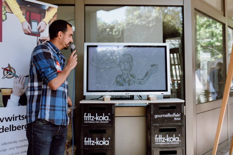 Beim FensterLunch im September 2019 haben die beiden Heidelberger Illustrator*innen Max Bachmeier und Lara Schmelzeisen den Einsatz und die unterschiedlichen, ganz individuellen Möglichkeiten des Graphic Recordings präsentiert.