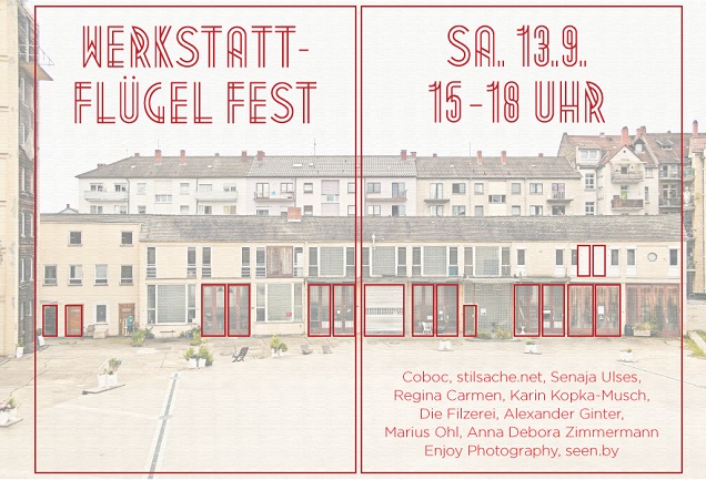 Am Samstag, 13.09.2014 laden die Kultur- und Kreativschaffenden, Künstlerinnen und Künstler des Werkstatt-Flügels im Dezernat 16 herzlich zu einem kleinen Fest ein. Interessierte Besucher sind herzlich eingeladen, sich die Arbeiten anzuschauen und mit den Kreativschaffenden ins Gespräch zu kommen. Für das kulinarische Wohl wird gesorgt.